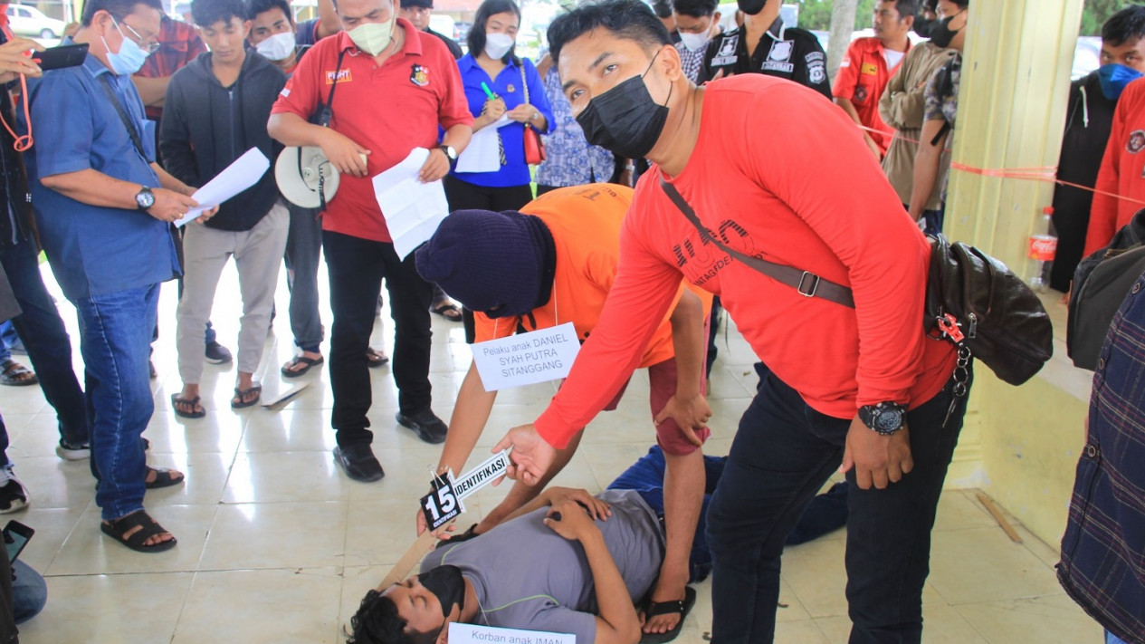 DS menusuk korban beberapa kali ke bagian tubuh. Akibatnya, EN dan EJ meninggal di tempat kejadian.