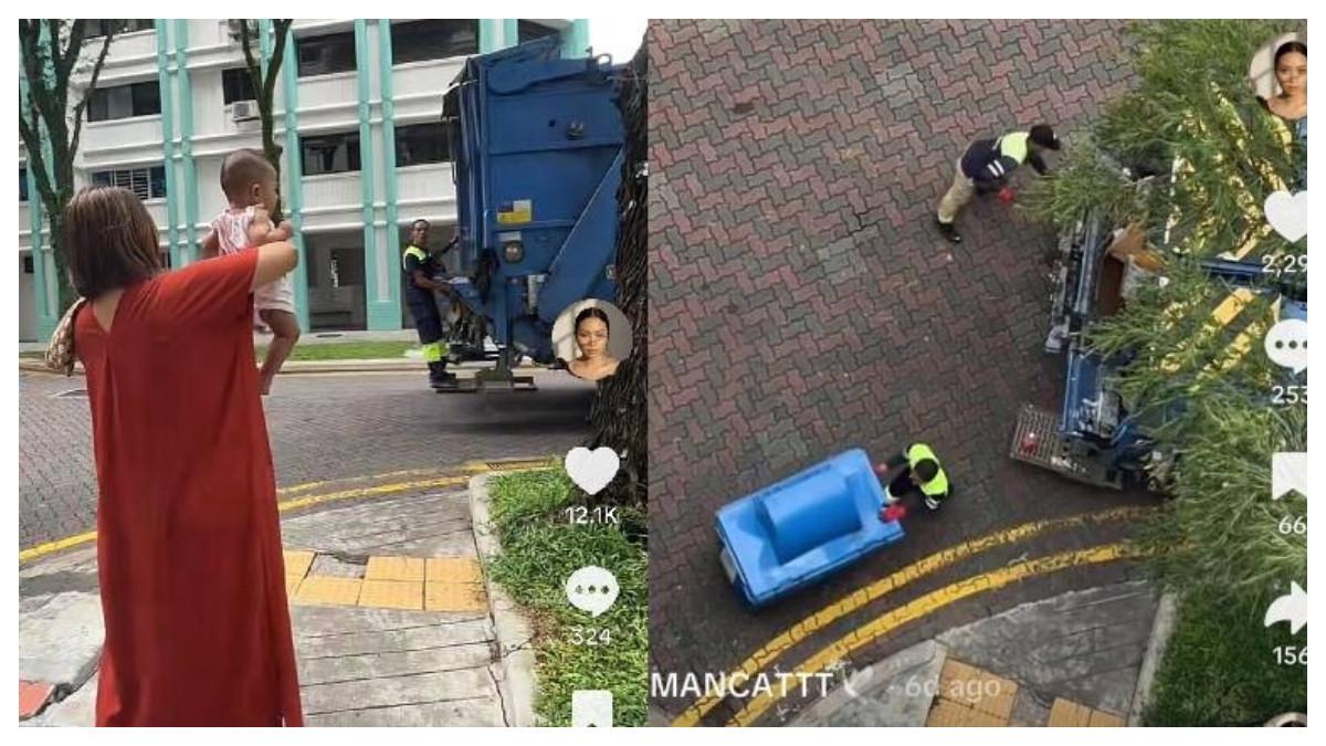 Pada video yang diunggah pada 11 Desember, pengguna TikTok dan kreator konten bernama Humancatt terlihat memangku putrinya yang berusia tujuh bulan saat truk sampah yang dikemudikan oleh ayahnya melewati area tempat tinggal mereka.